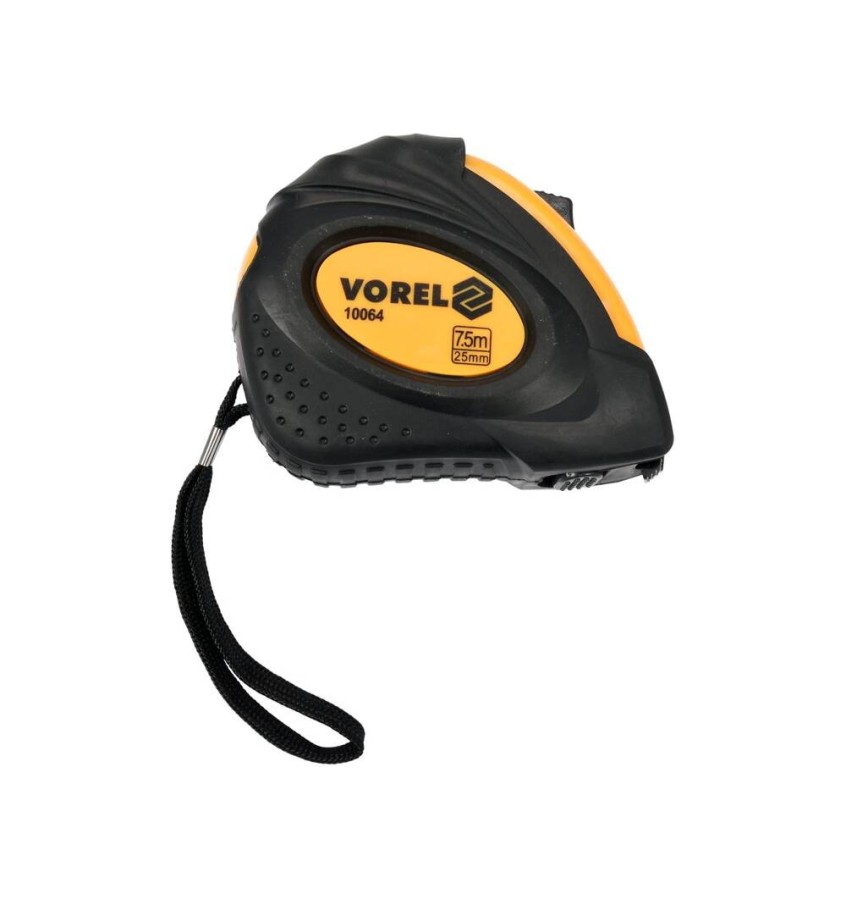 Miara stalowa zwijana o wymiarach 7,5 m x 25 mm wykonana w II klasie dokładności. Miara wyposażona jest w dwie blokady: stałą z przesuwanym klawiszem i szybką z przyciskiem w podstawie miary.