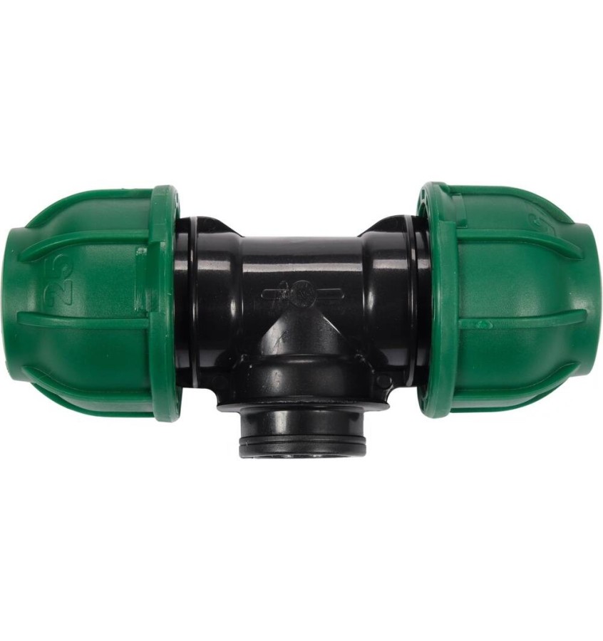 Trójnik przeznaczony do łączenia rur PE w instalacjach wodnych, wykonany z wysokiej jakości polipropylenu.