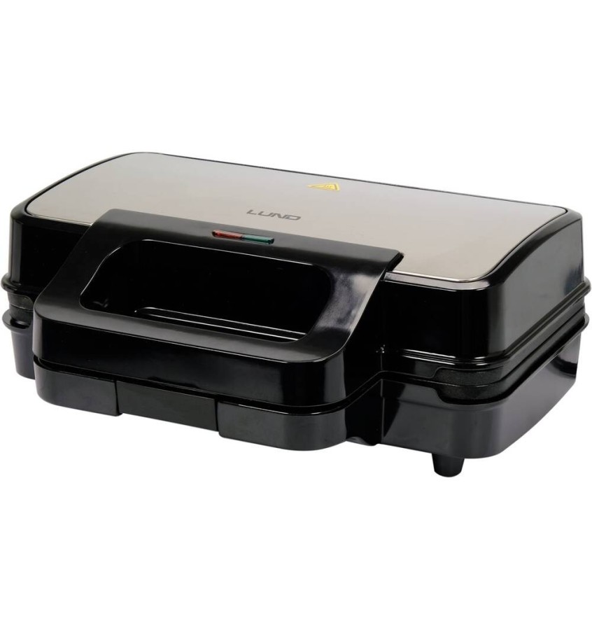 Duży i wydajny opiekacz 3w1 marki LUND z trzema wymiennymi płytami - do tostów, gofrów i do grillowania. Nieprzywierające powłoki zapewniają równomierne opiekanie i łatwe zdejmowanie jedzenia z płyt grzewczych. Duża płyta 28x15cm umożliwia przygotowanie większych tostów niż w tradycyjnym, tańszym opiekaczu.
