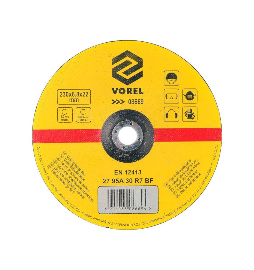 Wykonana z elektrokorundu, zbrojona wypukła tarcza o średniej granulacji i wysokiej twardości, na bazie spoiwa żywicznego.