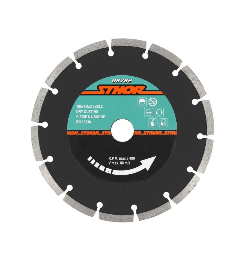 Tarcza diamentowa do szlifierek kątowych przeznaczona do pracy „na sucho'. Polecana do cięcia ceramiki, betonu, kamienia, cegły.