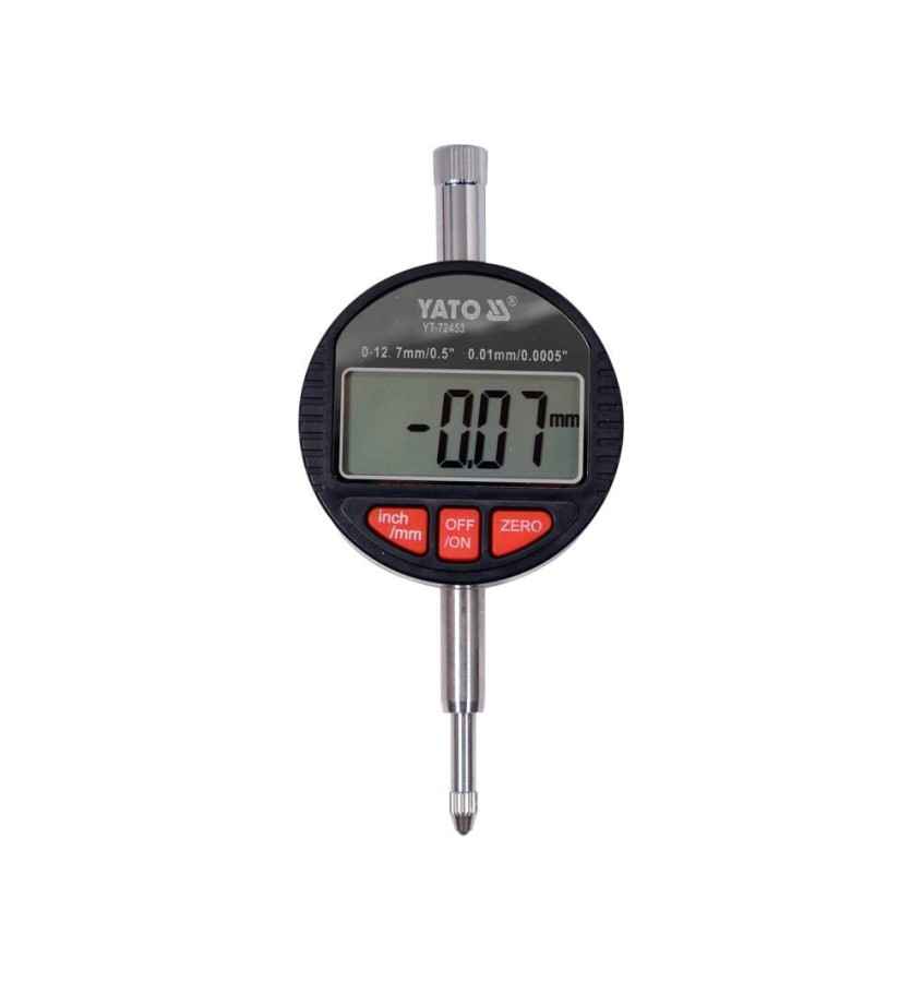 Profesjonalny elektroniczny czujnik zegarowy YT-72453 znajduje szerokie zastosowanie w pracach warsztatowych oraz przy kontroli maszyn. Doskonale sprawdzi się podczas obsługi i kontroli prawidłowości instalacji tarcz hamulcowych oraz wszelkiego rodzaju kół pasowych czy wałów. Dzięki specjalnej podstawie magnetycznej YT-72453 może stanowić stabilny punkt pomiarowy dla sprawdzania bicia elementów obrotowych.