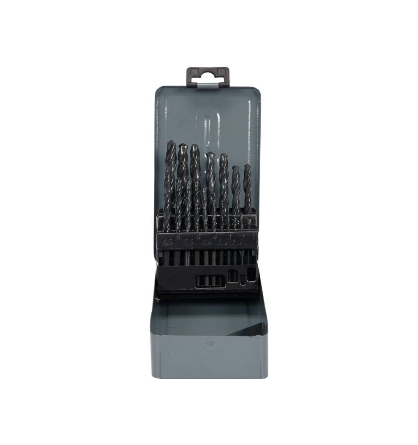 Wykonane ze stali szybkotnącej HSS wiertła do metalu. Parametry zgodne z din 338, powierzchnia czerniona. Zestaw w praktycznej metalowej kasecie. W skład zestawu wchodzi 19 wierteł o średnicy [mm]: 1,0; 1,5; 2,0; 2,5; 3,0; 3,5; 4,0; 4,5; 5,0; 5,5; 6,0; 6,5; 7,0; 7,5; 8,0; 8,5; 9,0; 9,5; 10,0