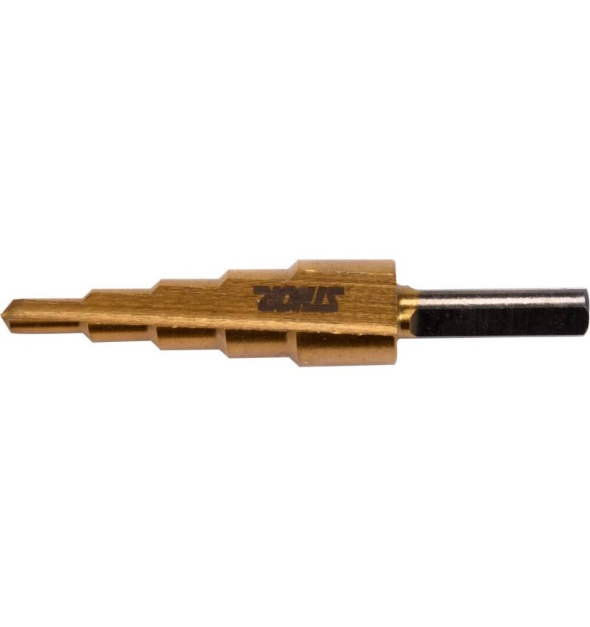 Wiertło stopniowe marki przeznaczone do wiercenia w wysokogatunkowej stali nierdzewnej, konstrukcyjnej i walcowanej na zimno, w metalach kolorowych, blachach stalowych, tworzywach sztucznych.