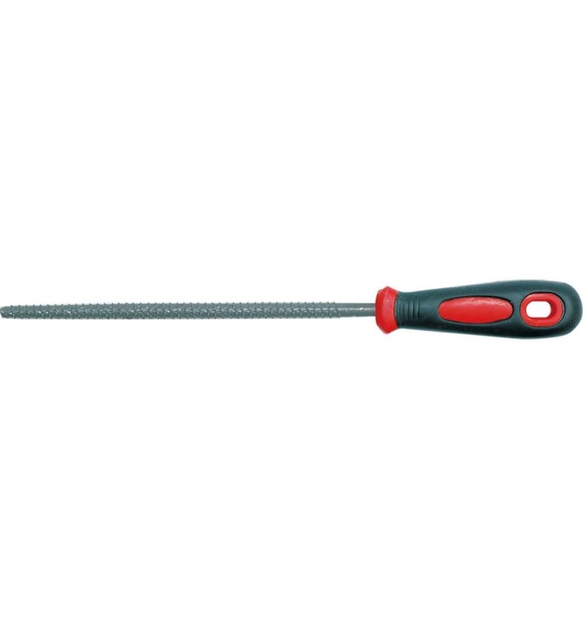 Tarnik o profilu okrągłym, zbieżny ze specjalnym uzębieniem do agresywnej obróbki drewna z dwukomponentową rękojeścią z tworzywa.