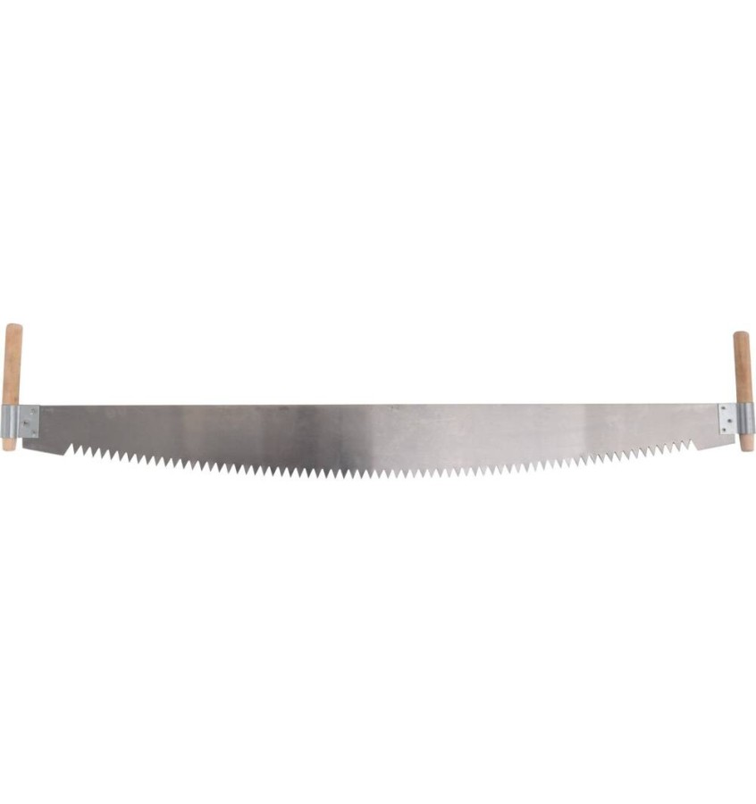 Piła poprzeczna wykonana ze sprężystej blachy o długości 1000 mm i dwóch drewnianych rękojeści.