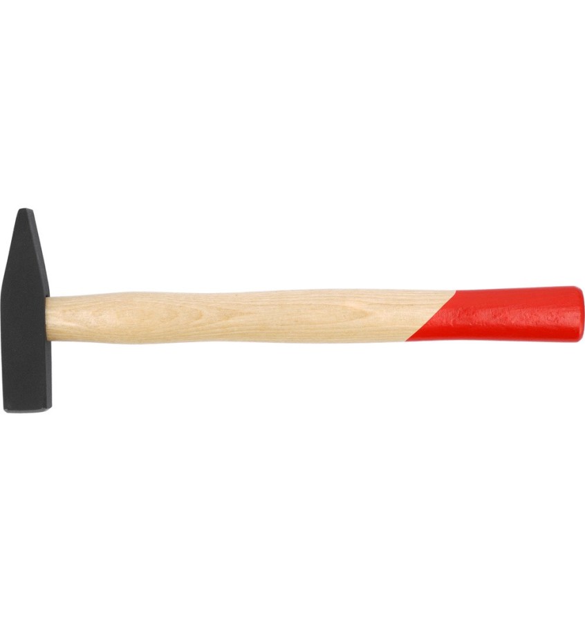 Stalowy młotek osadzony na drewnianym trzonku. Przeznaczony do wbijania gwoździ, prac montażowych i innych podobnych zastosowań w warsztacie i gospodarstwie domowym.