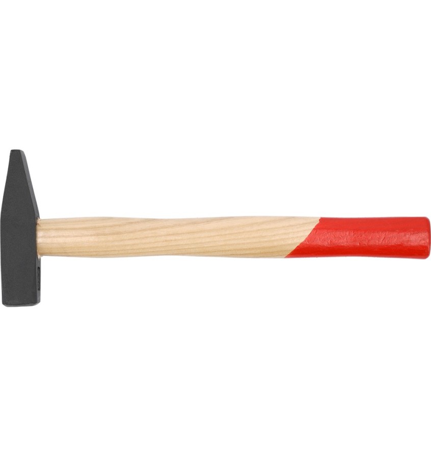 Stalowy młotek osadzony na drewnianym trzonku. Przeznaczony do wbijania gwoździ, prac montażowych i innych podobnych zastosowań w warsztacie i gospodarstwie domowym.