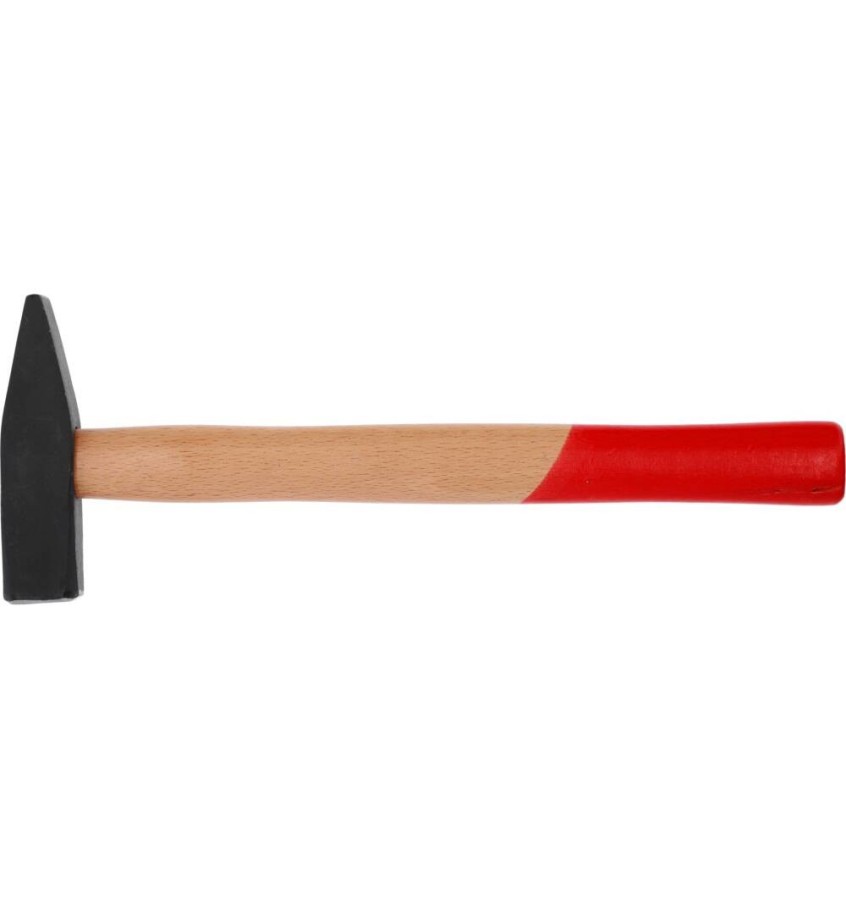 Stalowy młotek osadzony na drewnianym trzonku. Przeznaczony do wbijania gwoździ, prac montażowych i innych podobnych zastosowań w warsztacie i gospodarstwie domowym.