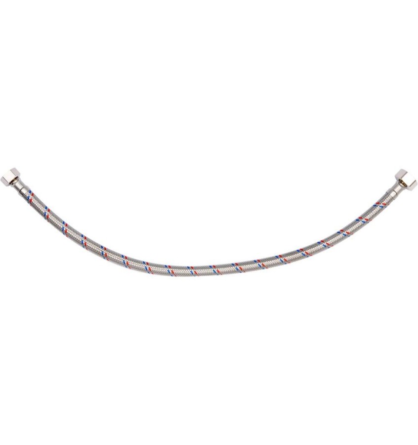 Elastyczny wąż przyłączeniowy w oplocie ze stali nierdzewnej. Przeznaczony jest do wody ciepłej i zimnej. Posiada atest PZH na kontakt z wodą pitną. Długość 500mm. Max ciśnienie 1MPa. Max temp 90st C. Średni przepływ 32L/min. Średnica wewnętrzna 8mm, a zewnętrzna 12mm. Gwint przyłączeniowy: żeński 1/2' x żeński 3/8'. Przewód gumowy wykonany z gumy EPDM, przyłącza mosiężne niklowane, uszczelka z gumy EPDM. Przeznaczony jest od podłączenia spłuczek toaletowych czy zaworów.