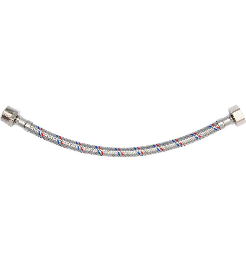 Elastyczny wąż przyłączeniowy do baterii w oplocie ze stali nierdzewnej. Przeznaczony jest do wody ciepłej i zimnej.