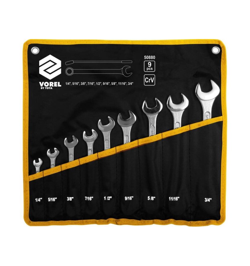 Klucze płasko-oczkowe, crv, calowe 1/4'-3/4', kpl. 9 szt.