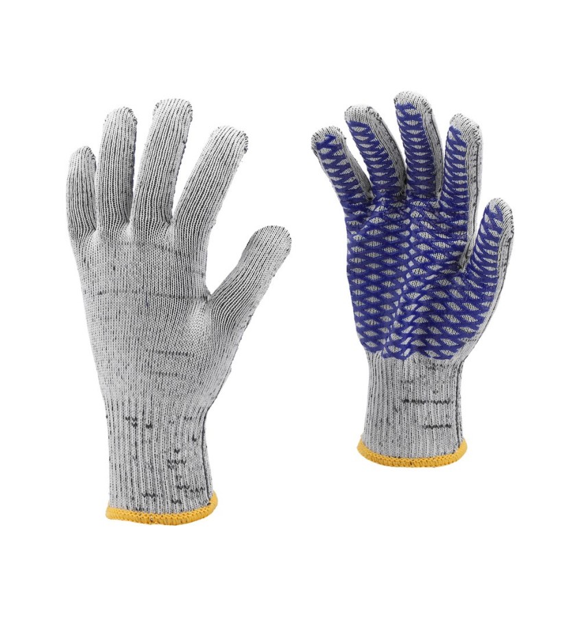 Rękawice bawełniane w części chwytnej powlekane PVC w kształt siatki, co zapewnia dużą chwytność i odporność na ścieranie.