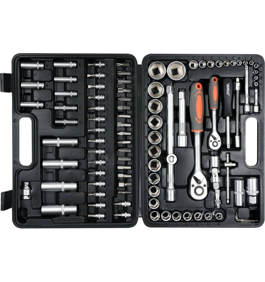 Zestaw narzędziowy STHOR składa się z 94 elementów umieszczonych w wygodnej walizce z tworzywa sztucznego. Narzędzia zostały precyzyjnie wykonane z materiałów zapewniających ich niezawodność.