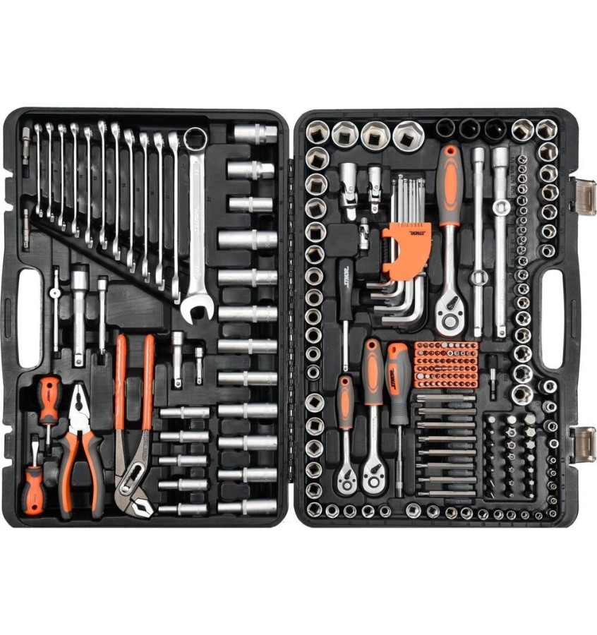 Zestaw narzędziowy STHOR składa się z 225 elementów umieszczonych w wygodnej walizce z tworzywa sztucznego. Narzędzia zostały precyzyjnie wykonane z materiałów zapewniających ich niezawodność.