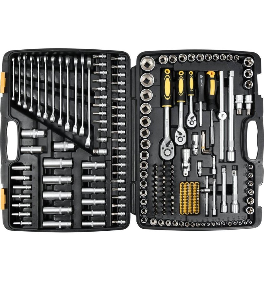 Zestaw narzędziowy VOREL składa się z 216 elementów umieszczonych w wygodnej walizce z tworzywa sztucznego.