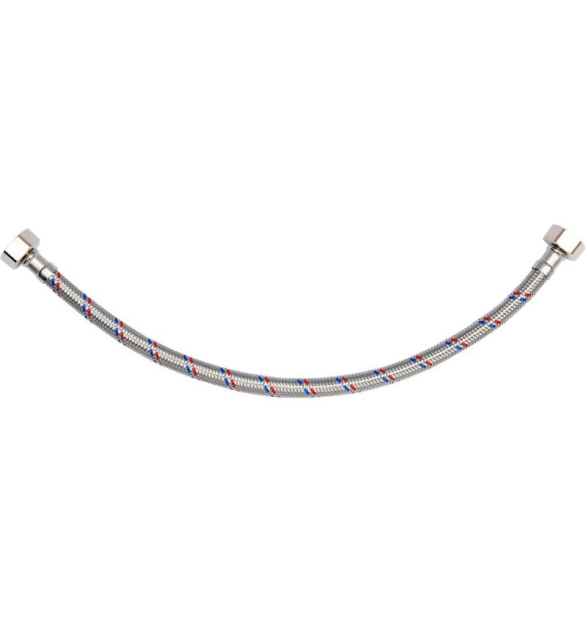 Elastyczny wąż przyłączeniowy w oplocie ze stali nierdzewnej. Przeznaczony jest do wody ciepłej i zimnej. Posiada atest PZH na kontakt z wodą pitną. Długość 400mm. Max ciśnienie 1MPa. Max temp 90st C. Średni przepływ 32L/min. Średnica wewnętrzna 8mm, a zewnętrzna 12mm. Gwint przyłączeniowy: żeński 1/2' x żeński 1/2'. Przewód gumowy wykonany z gumy EPDM, przyłącza mosiężne niklowane, uszczelka z gumy EPDM. Przeznaczony jest od podłączenia spłuczek toaletowych czy zaworów.