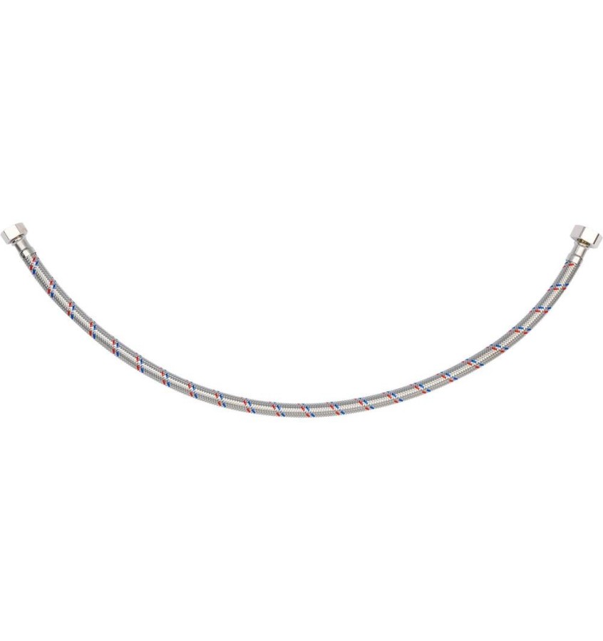 Elastyczny wąż przyłączeniowy w oplocie ze stali nierdzewnej. Przeznaczony jest do wody ciepłej i zimnej. Posiada atest PZH na kontakt z wodą pitną. Długość 600mm. Max ciśnienie 1MPa. Max temp 90st C. Średni przepływ 32L/min. Średnica wewnętrzna 8mm, a zewnętrzna 12mm. Gwint przyłączeniowy: żeński 1/2' x żeński 3/8'. Przewód gumowy wykonany z gumy EPDM, przyłącza mosiężne niklowane, uszczelka z gumy EPDM. Przeznaczony jest od podłączenia spłuczek toaletowych czy zaworów.