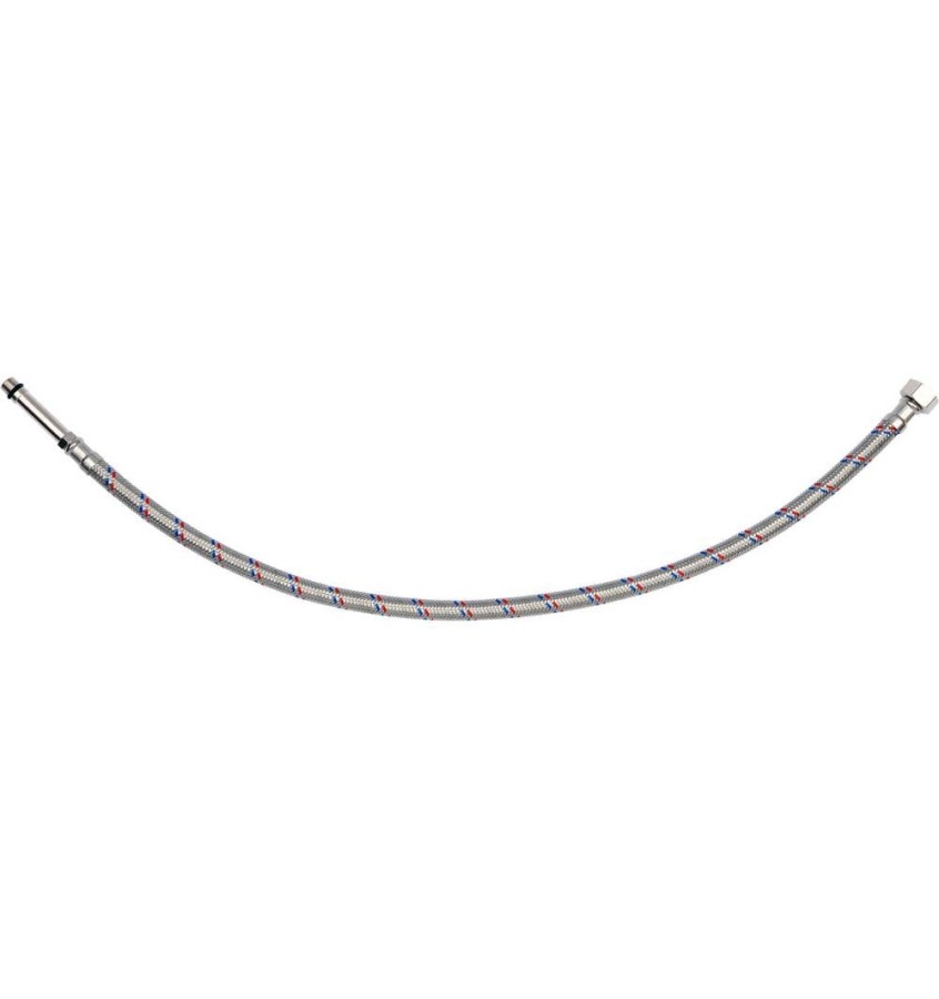 Elastyczny wąż przyłączeniowy w oplocie ze stali nierdzewnej do baterii. Przeznaczony jest do wody ciepłej i zimnej. Posiada atest PZH na kontakt z wodą pitną. Długość 600mm. Max ciśnienie 1MPa. Max temp 90st C. Średni przepływ 32L/min. Średnica wewnętrzna 8mm, a zewnętrzna 12mm. Gwint przyłączeniowy: żeński 3/8' x męski M10 (50mm długi). Przewód gumowy wykonany z gumy EPDM, przyłącza mosiężne niklowane, uszczelka z gumy EPDM. Przeznaczony jest od podłączenia baterii sztorcowych umywalkowych i wannowych z zaworami.