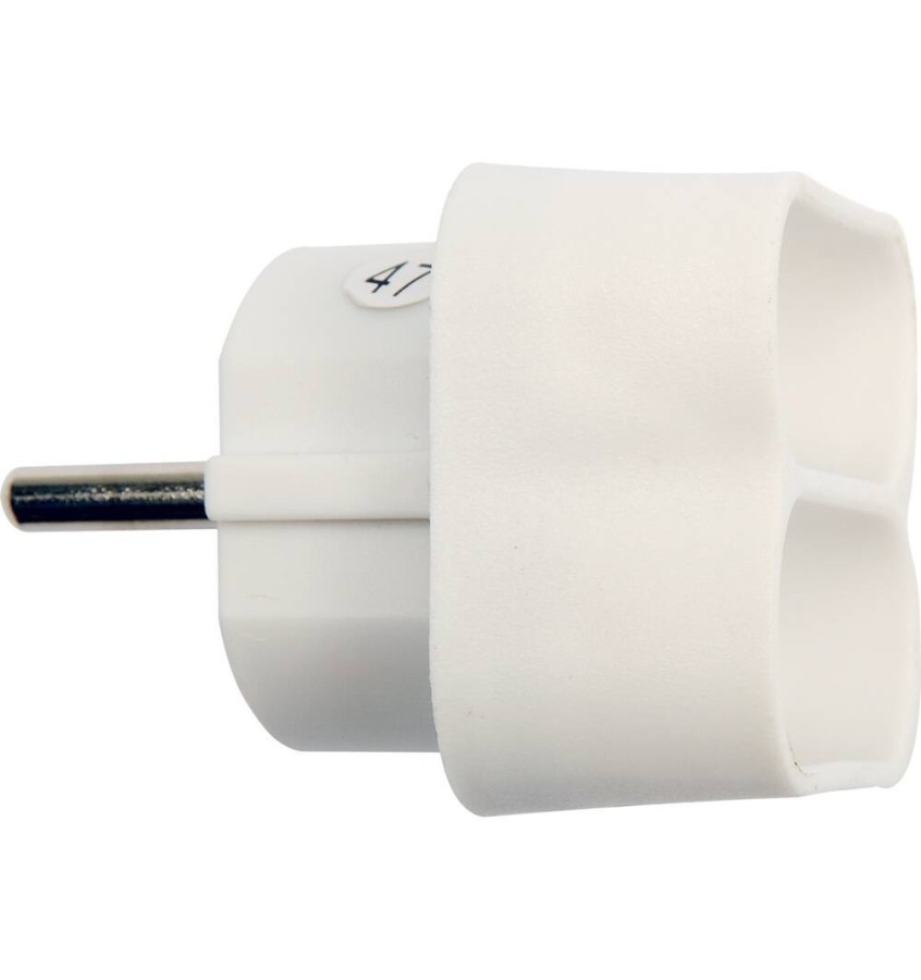 Klasyczny rozgałęźnik bez uziemienia. Posiada dwa gniazda płaskie (do wtyczek płaskich 2P).