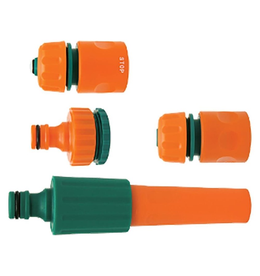 Zestaw 1/2' zawiera: przyłącze do kranu o średnicy 1/2' oraz 3/4', złączkę zwykłą oraz złączkę stop pod wąż średnicy 1/2', zraszacz prosty.