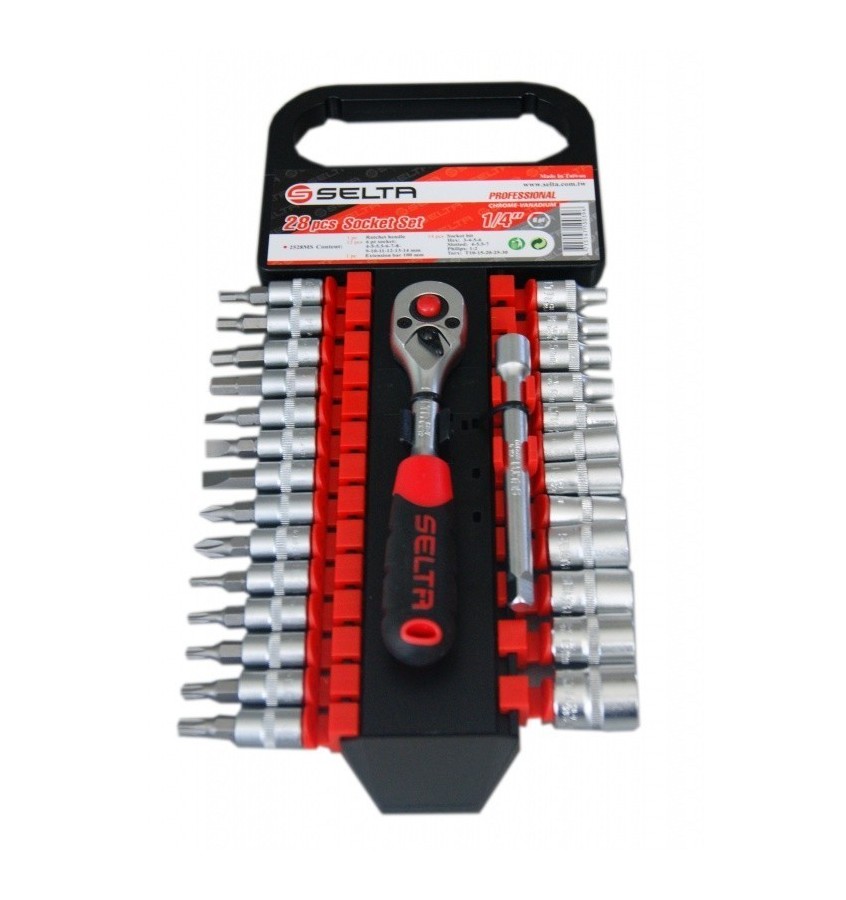 Zestaw narzędziowy na wieszaku, 1/4", 27 cz grzechotka, nasadki SELTA