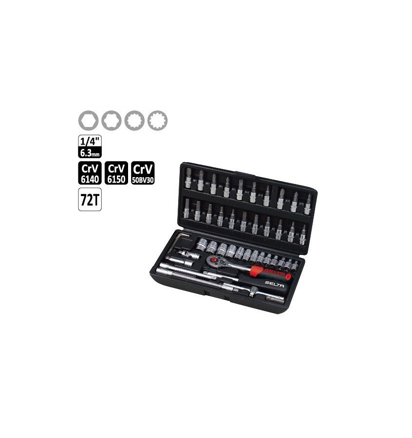 Zestaw narzędziowy 1/4", 46cz grzechotka, nasadki, bity SELTA