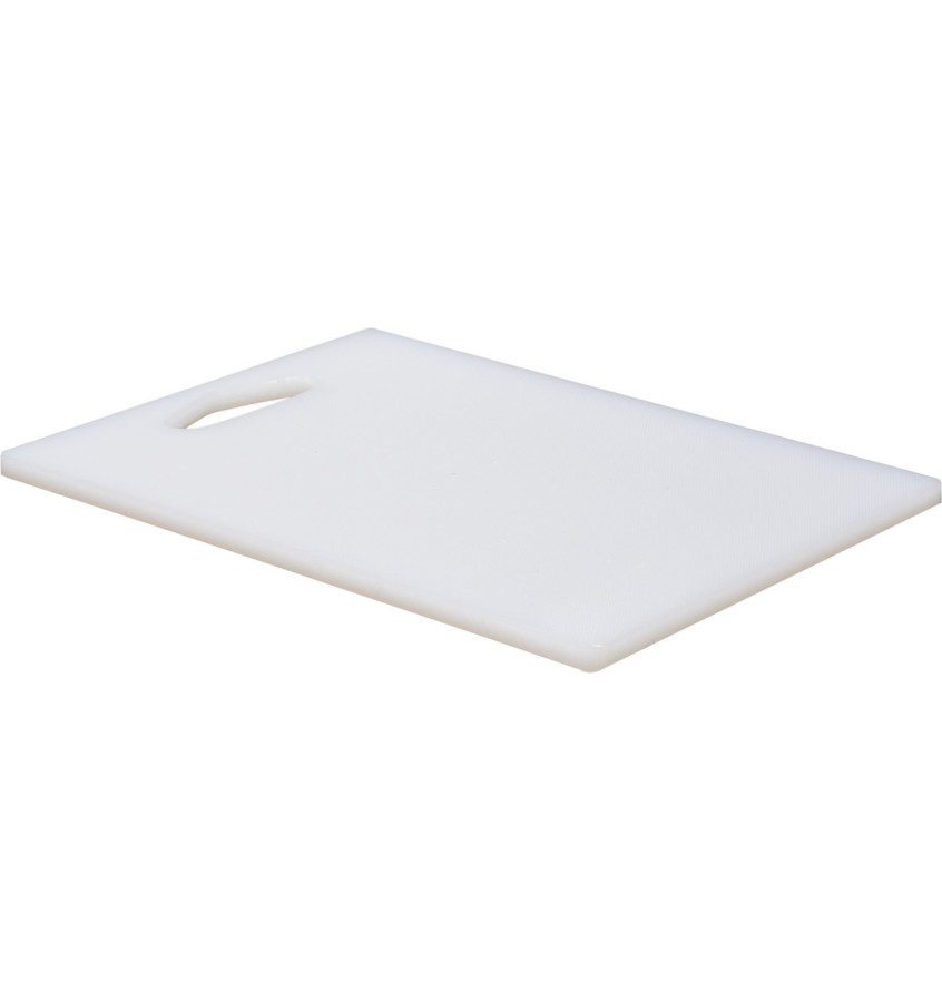 Uniwersalna deska do krojenia w kolorze białym przeznaczona do użytku w gastronomii. Wykonana jest z wysokiej jakości polietylenu, o grubości 10mm, gwarantującego dużą wytrzymałość i żywotność. Deska YATO jest dwustronna oraz posiada wygodny w użyciu uchwyt ułatwiający podnoszenie jej z blatu stołu, a także powieszenie po zakończeniu pracy. Zaokrąglone krawędzie oraz staranne wykonanie zwiększają bezpieczeństwo podczas pracy.