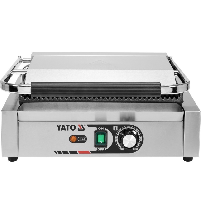 Grill YATO jest urządzeniem niezbędnym na każdej kuchni. Przeznaczony jest do szybkiego przygotowywania hamburgerów, mięs, ryb, tortili, tostów, panini czy warzyw.