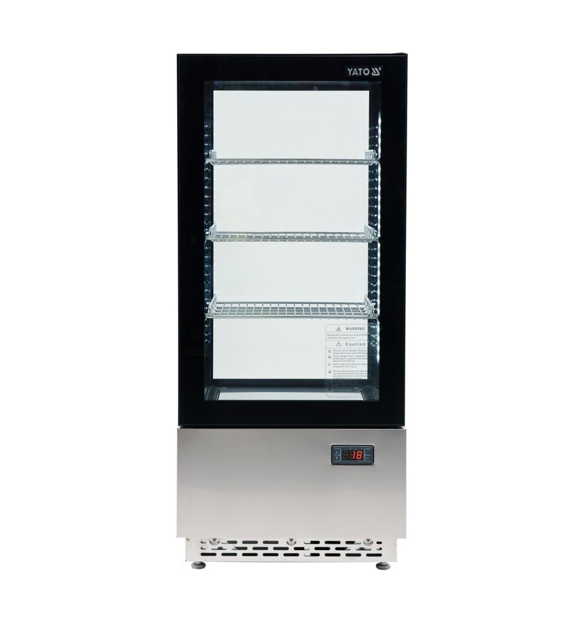 Witryna chłodnicza marki YATO przeznaczona jest do ekspozycji ciast, tortów, koktajli, jogurtów czy różnego rodzaju napojów orzeźwiających, a także sałatek czy drobnych przekąsek. Nowoczesne wzornictwo połączone z wysoką jakością surowców powoduję, że witryna chłodnicza YATO doskonale prezentuje się na froncie we wszelkiego typu cukierniach, kawiarniach, restauracjach czy punktach handlowych.