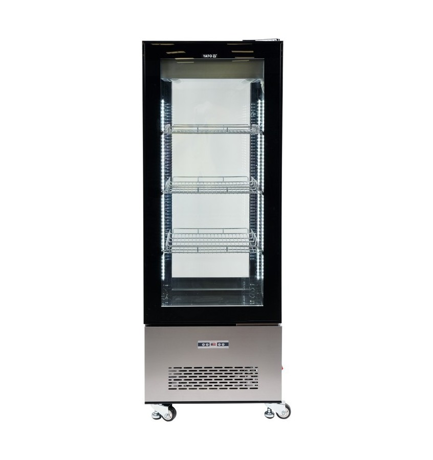 Witryna chłodnicza YATO wolnostojąca o pojemności 400L w kolorze czarnym o wymiarze 650x650x1908mm.