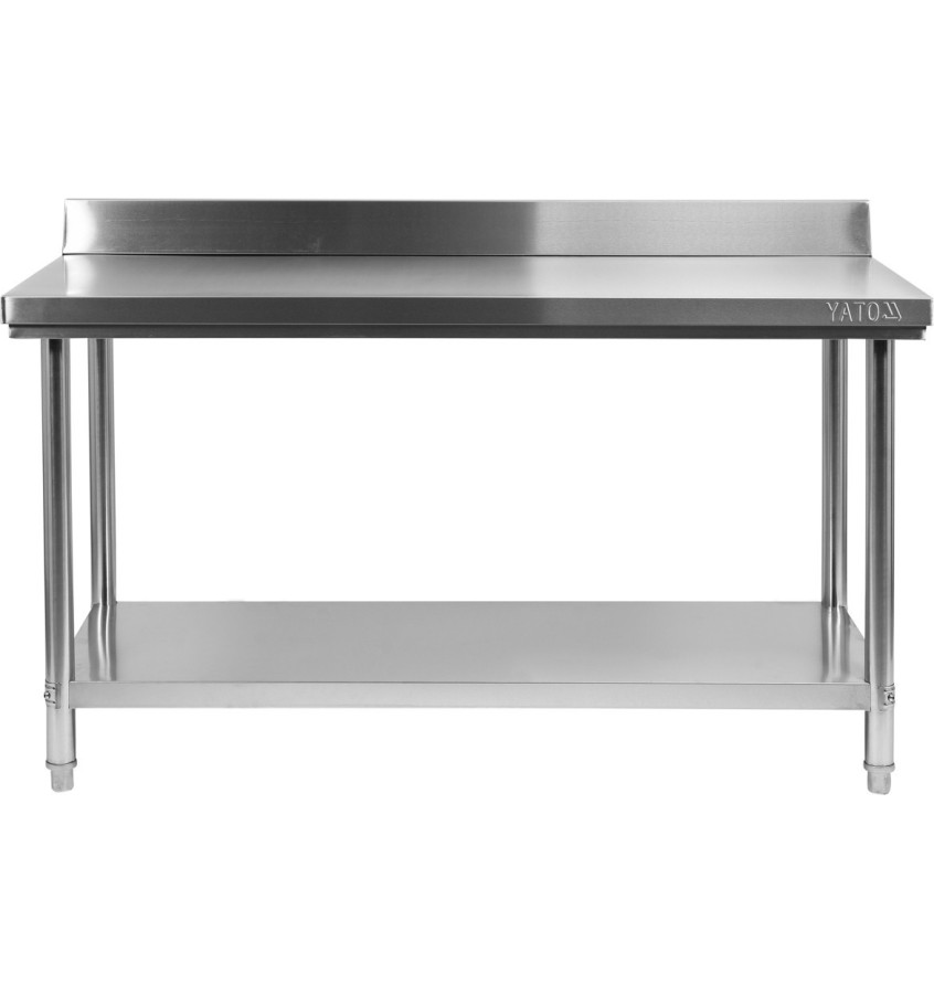 Blat z tyłu posiada dodatkowy rant o wysokości 100mm, dzięki któremu po przystawieniu stołu do ściany zapobiega on wpadaniu resztek jedzenia za stół znacznie zwiększając higienę pracy.