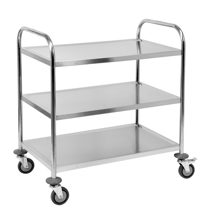 Wózek wykonany jest z wysokiej jakości stali nierdzewnej typu 201. Gwarantuje to odporność na rdzę i zapewnia wysokie walory użytkowania oraz łatwość utrzymania w czystości. Bez problemu można użytkować go na zewnątrz.