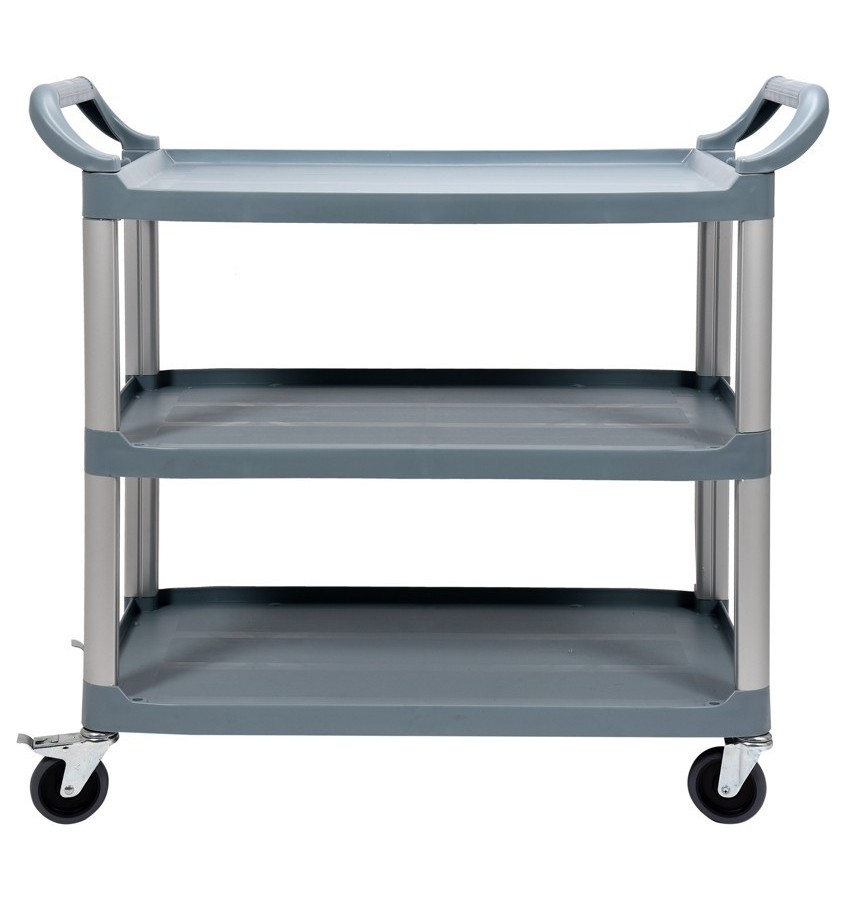 Wysoka jakość wykonania wraz z solidnymi elementami konstrukcji jest gwarancją wieloletniej bezawaryjnej pracy. Rama wózka wykonana jest z zaokrąglonych profili aluminiowych a blaty z wysokiej jakości polietylenu. Gwarantuje to wysokie walory użytkowania oraz łatwość utrzymania w czystości. Bez problemu można użytkować go na zewnątrz. Pod spodem każdej półki zastosowano specjalne przetłoczenia wzmacniające konstrukcję i zwiększające nośność, która może wynieść nawet do 100kg.
