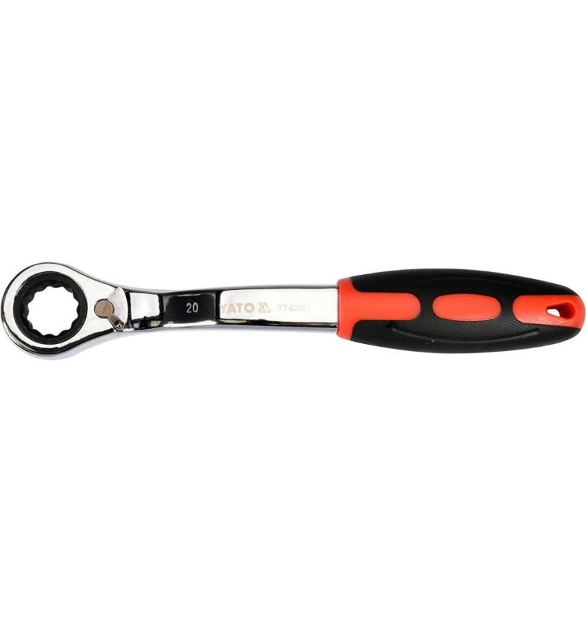 Klucz z grzechotką oraz odgiętym profilem przeznaczony do odkręcania śrub. Polecany serwisom motoryzacyjnym.