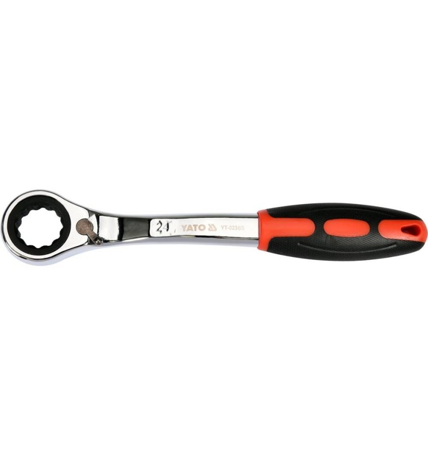 Klucz z grzechotką oraz odgiętym profilem przeznaczony do odkręcania śrub. Polecany serwisom motoryzacyjnym.