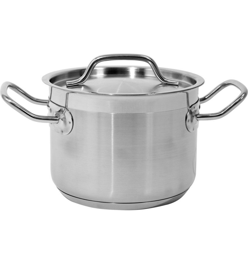 Profesjonalny garnek wysoki z pokrywką, o wymiarach 16x12 cm oraz pojemności 2,4 l.