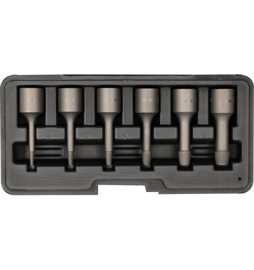 Zestaw zawiera 6 wykrętaków o średnicy od 2 do 10mm.