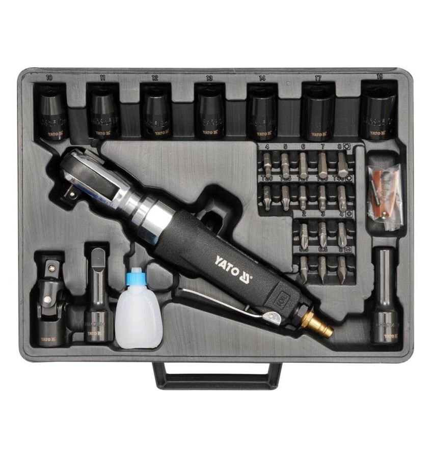 Grzechotka udarowa pneumatyczna z akcesoriami - klucz kątowy YATO