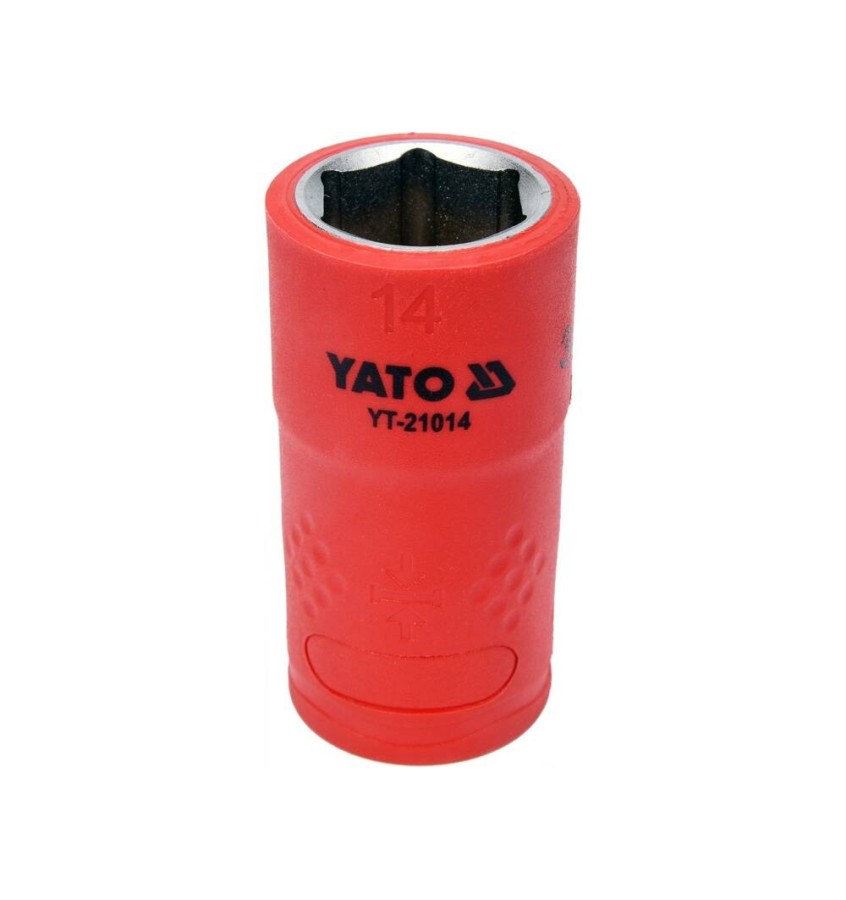 Izolowana nasadka marki YATO YT-21014. Wykonana z wytrzymałej, narzędziowej stali chromowo-wanadowej CrV. Wielokomponentowa rękojeść z certyfikatem VDE zapewnia izolację do 1000 V, dzięki czemu narzędzie może być stosowane podczas pracy przy instalacjach niskonapięciowych.