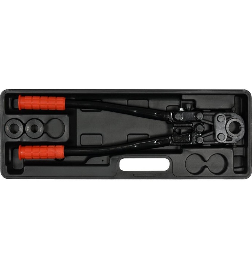 Ręczna praska hydrauliczna z zestawem 3 matryc typu TH, przeznaczona do zaciskania złączek na rurach