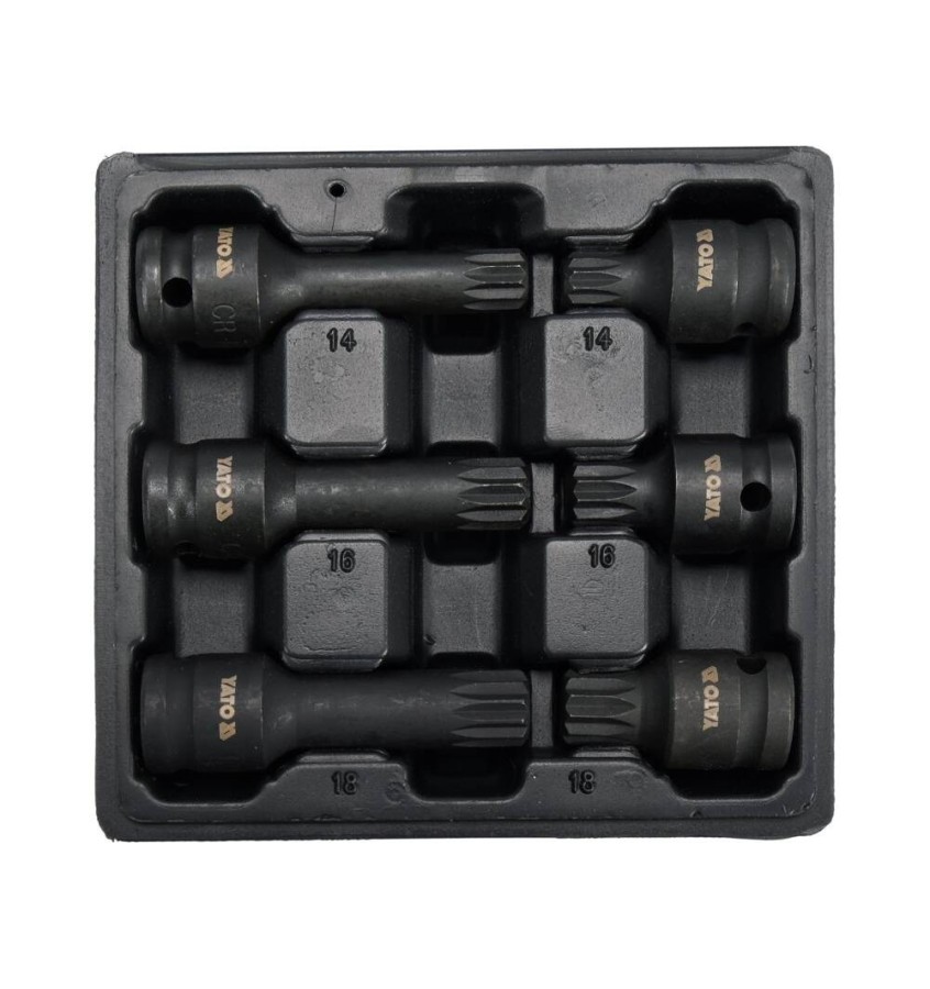 6-częściowy zestaw udarowych kluczy trzpieniowych Spline polecany do serwisów samochodowych i mechanicznych. Przeznaczony do pojazdów VW LT, Transporter, Sharan, Golf.
