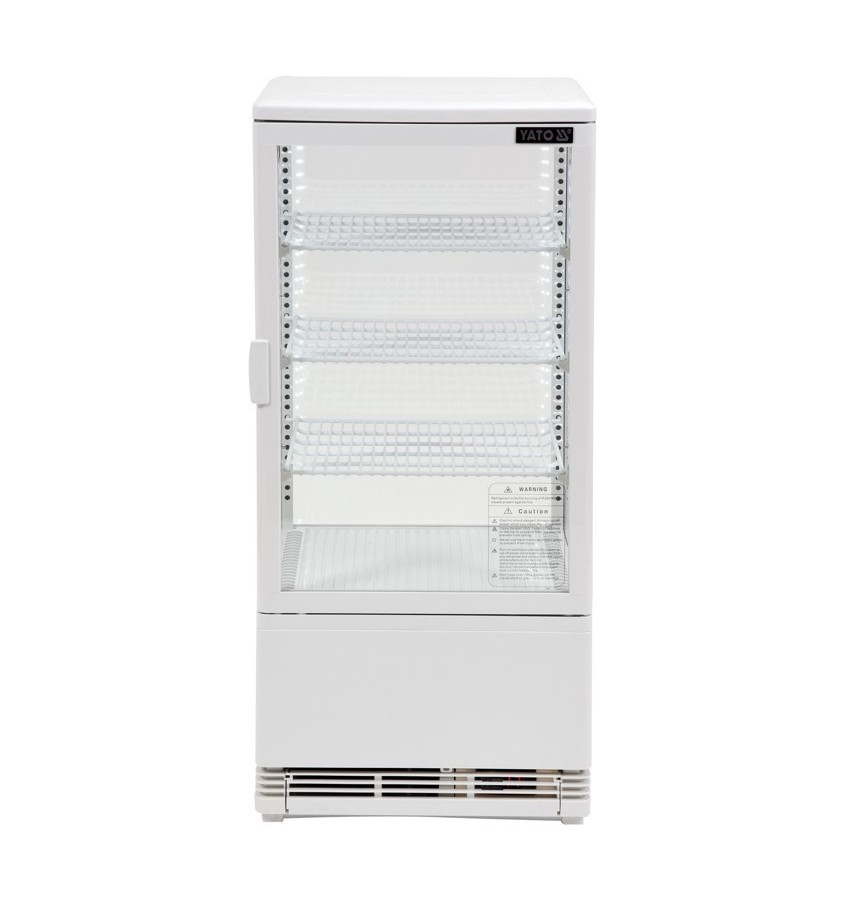 Witryna chłodnicza YATO wolnostojąca o pojemności 78L w kolorze białym o wymiarze 428x386x960mm.
