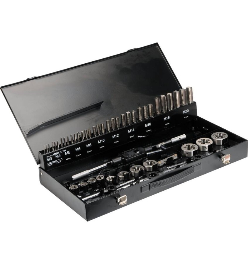 Zestaw gwintowników i narzynek Yato w rozmiarach od M3 do M20.
