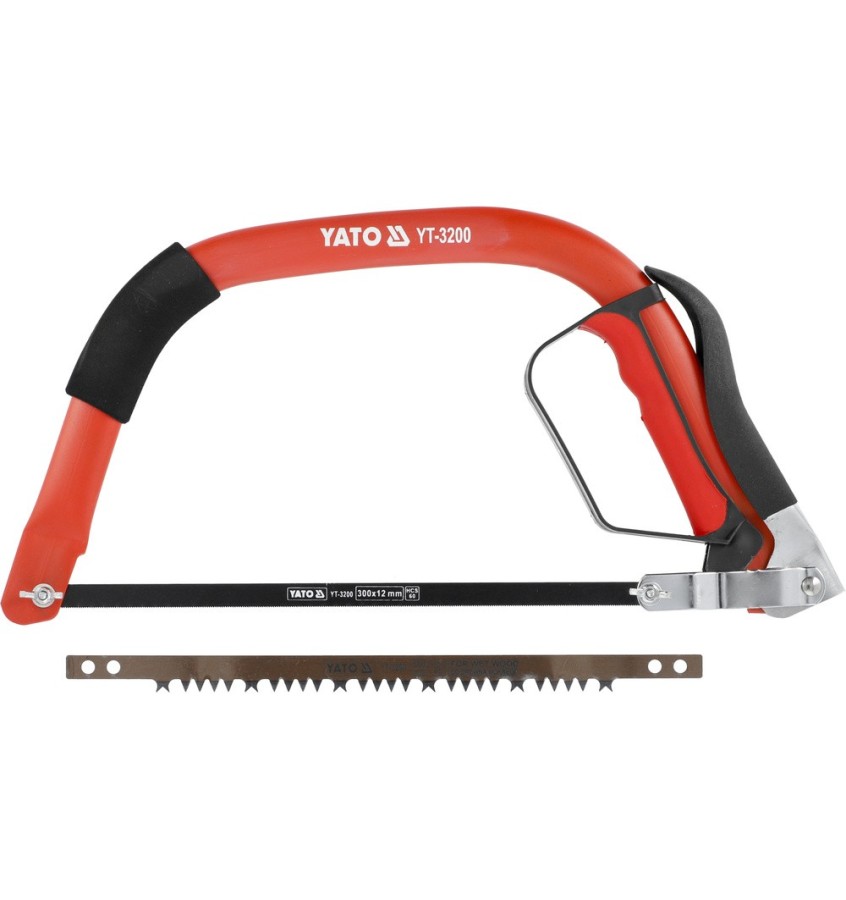 Solidnie wykonany, ze stalowego profilu, stabilny kabłąk z brzeszczotem do cięcia mokrego drewna. Brzeszczot hartowany o specjalnie dobranej podziałce i kształcie zębów.