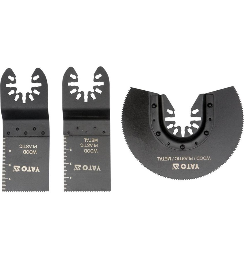 1 brzeszczot wgłębny HCS do drewna 34x40mm 1 brzeszczot wgłębny BIM do twardego drewna/metalu 34x40mm 1 brzeszczot okrągły HSS do twardego drewna/metalu 88mm
