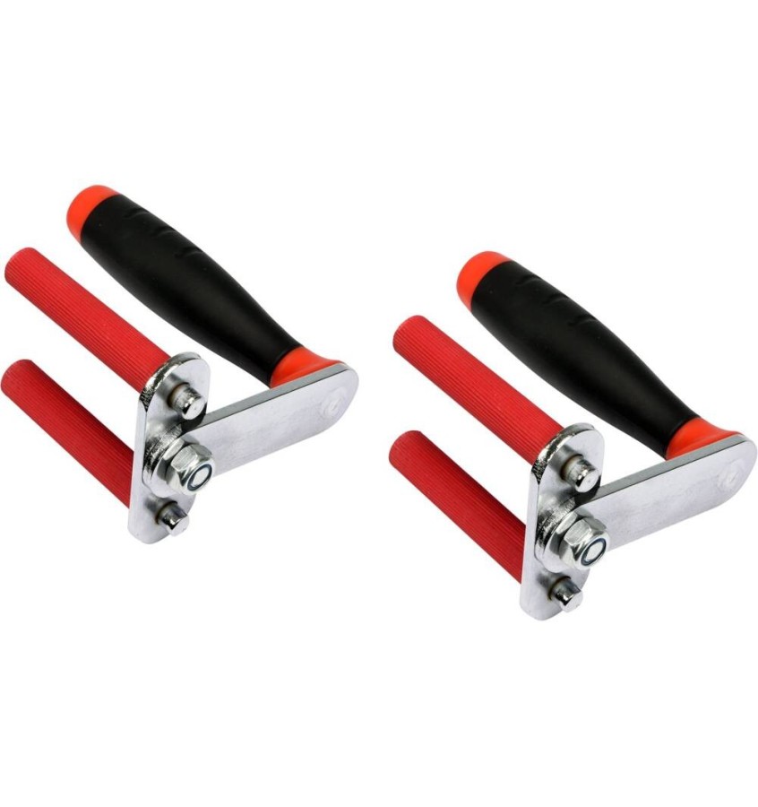 Profesjonalny uchwyt do noszenia płyt gipsowo-kartonowych wykonany ze stali , pokrytej tworzywem . Przemyślana i sprawdzona w działaniu konstrukcja powoduje samoczynne, silne zaciskanie uchwytu na niesionej płycie. Uchwyty zaciskowe , przeznaczone są do przenoszenia płyt przez dwie osoby. W zestawie znajdują się dwa uchwyty. Oprócz płyt gipsowo-kartonowych wykorzystując uchwyty można w bezpieczny sposób przenosić wszelkie płyty drewnopodobne, lub drzwi.