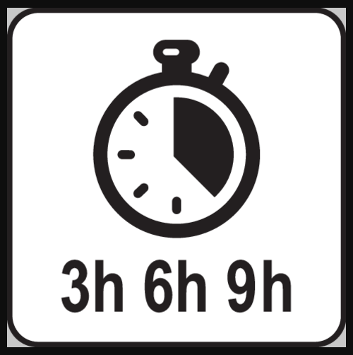 - Czasomierz: 3h/6h/9h/praca ciągła