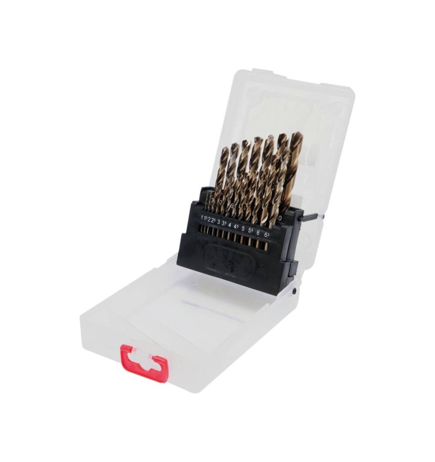 Zestaw wierteł kobaltowych do metalu 19 szt. Odporne na działanie wysokiej temperatury. W skład kompletu wchodzi 19 wierteł o średnicy [mm]: 1; 1,5; 2; 2,5; 3; 3,5; 4; 4,5; 5; 5,5; 6; 6,5; 7; 7,5; 8; 8,5; 9; 9,5; 10