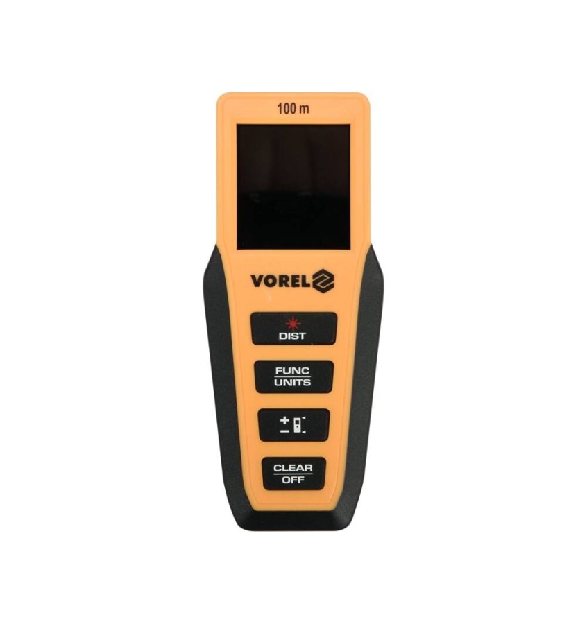 Odległościomierz laserowy z zakresem pomiaru od 0,2 do 100 m. Przeznaczony do szybkiego i precyzyjnego pomiaru odległości, kubatury, powierzchni.